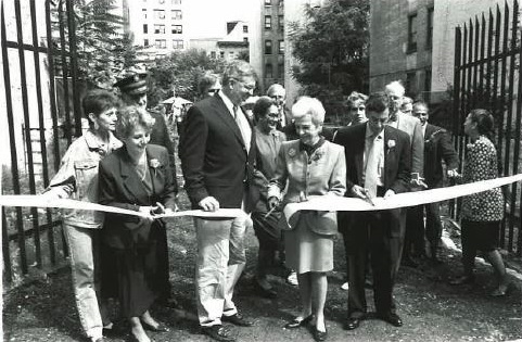 Marian S. Heiskell (center holding bouquet), along with parents, students, and representatives of the Salvation Army, GrowNYC and the Midtown West School.Marian S. Heiskell Garden, 315 West 48th Street, completed in 1997.It’s been almost 50 years since Marian...