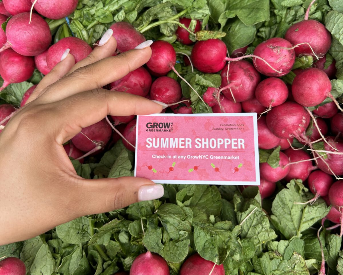 Collect a Summer Shopper card at any Greenmarket Market Info Tent beginning Monday, July 14.